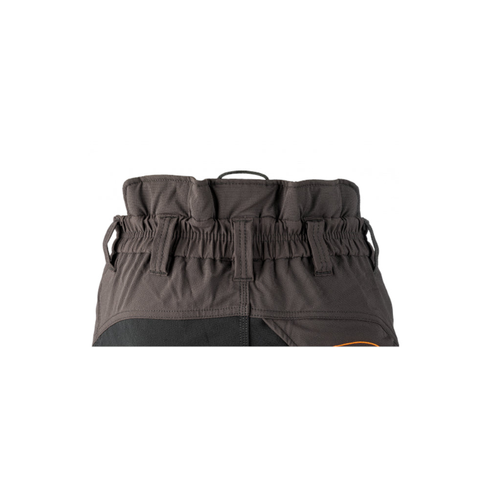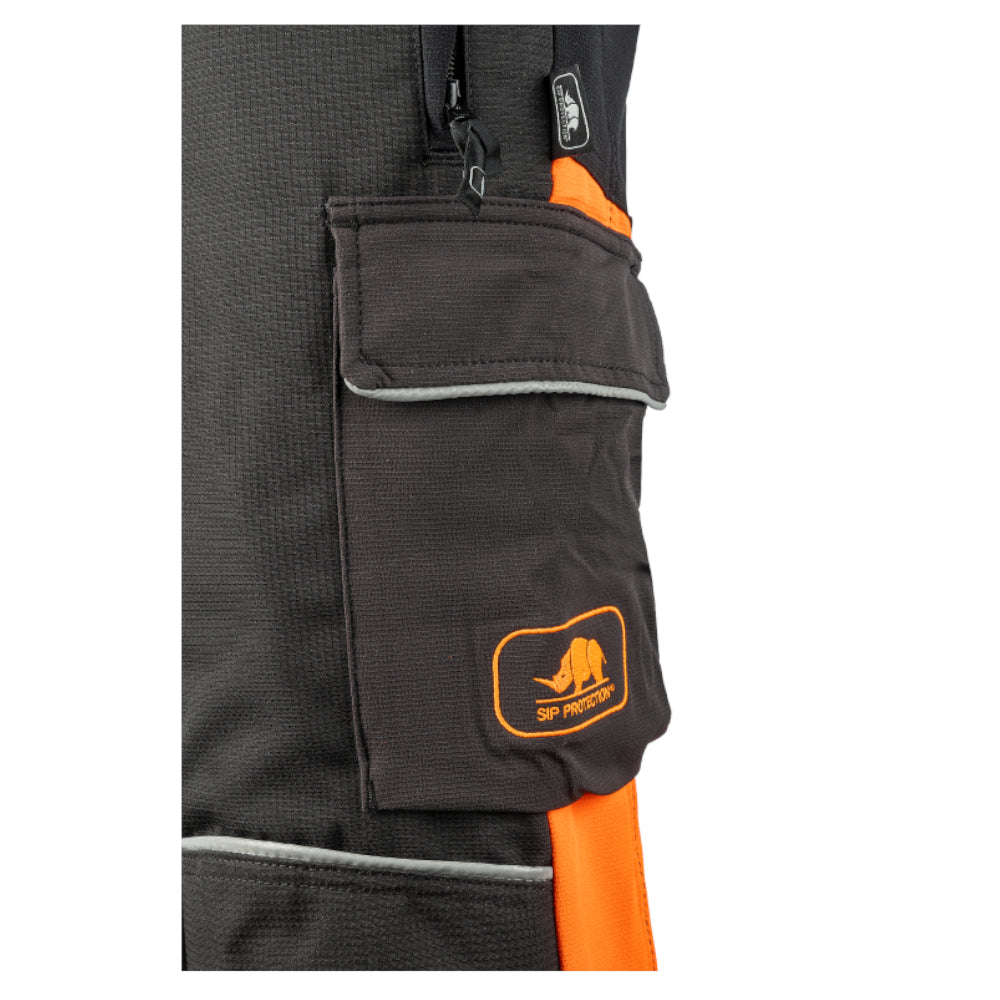 De Samourai zaagbroek is een zeer lichte moderne zaagbroek in de kleur zwart/grijs met fluor oranje. Dit is een zaagbroek met een hoog contrast en daardoor goed zichtbaar. Aan de achterzijd van de broek is een elastische tailleband aanwezig zijn er op beide benen ventilatie ritsen aangebracht. Deze broeken Voldoen aan de En385-5 zaagklasse 1 (20 mtr/sec)